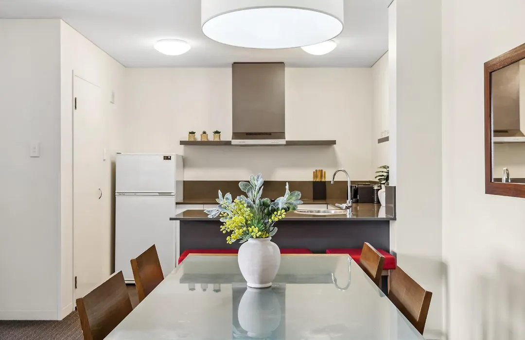 Naast koffie- en theevoorzieningen, zijn de zelfvoorzienende faciliteiten in de complete keuken onder andere een waterkoker, een koelkast en keukengerei. Dit 1-badkamer appartement is te bereiken vrij dicht bij Adelaide Tce Before Bennett St bushalte.